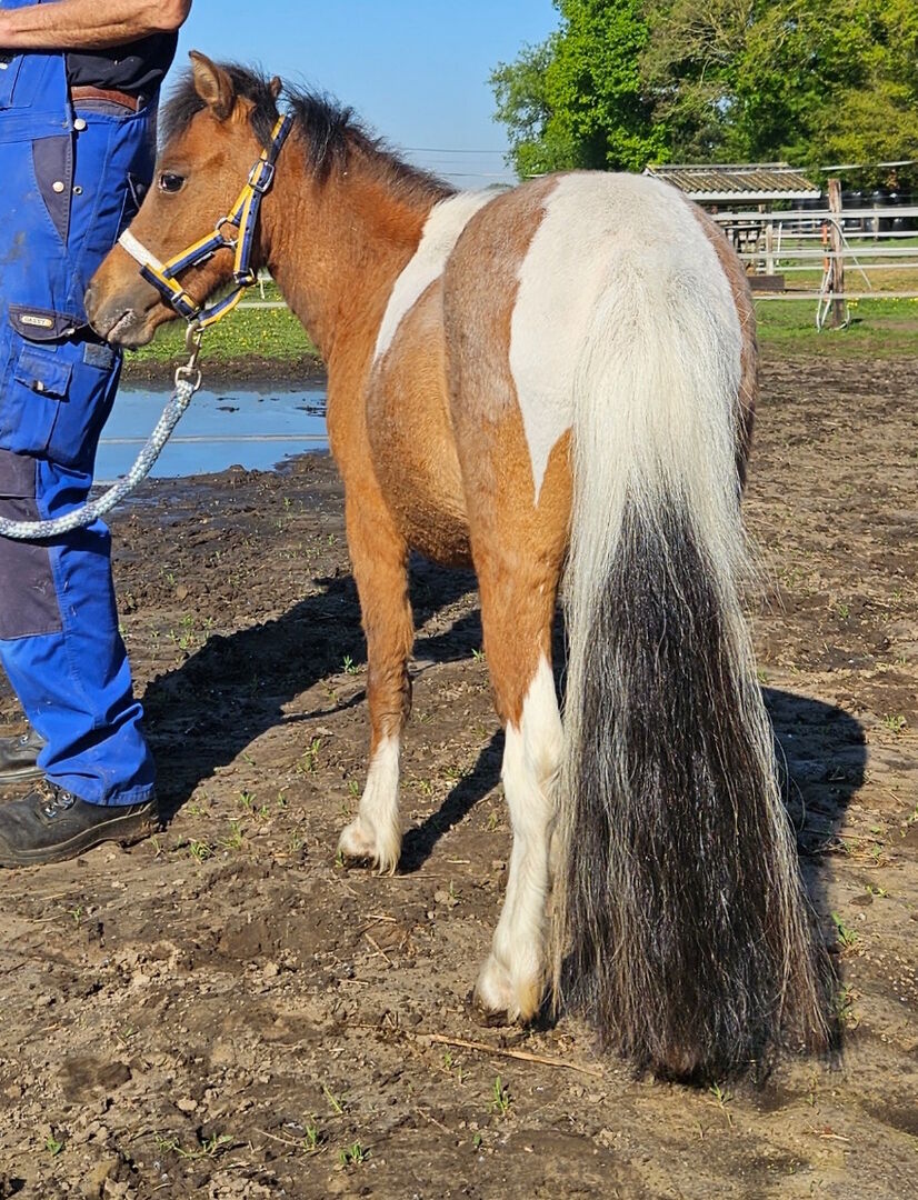 Reinrassiges Falabella Miniaturpferd - Stute - Aufgrund einer gesundheitsbedingten Verkleinerung unseres Zuchtprogramms bieten wir unsere reinrassige Falabella-Stute Hooidonkhofs F. Téa Serafina zum Verkauf an - geboren am 16. April 2023 - Farbe: braun-scheckig - Serafina hat bei der Falabella-Körung des Europäischen Falabella-Stutbuchs im August 2023 als Fohlen eine erste Prämie / Gold erhalten.
