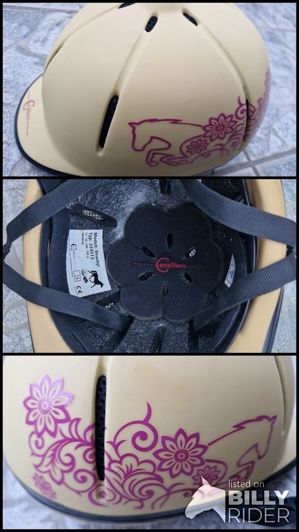 Verkaufe einen Kinderreithelm der Marke Covalliero in der Größe 52–56 cm. Der Helm ist gebraucht, aber in sehr gutem Zustand und wurde nur selten getragen. Farbe: Beige mit pinkem Blumenmuster – sehr hübsch und kindgerecht 🌸 Der Helm ist unfallfrei, sauber und voll funktionsfähig.