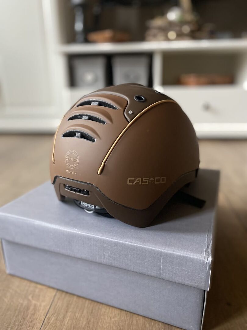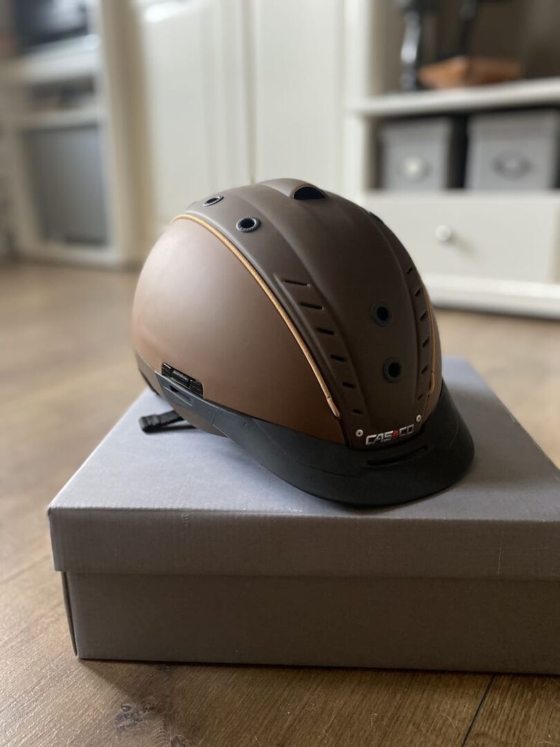 Zu verkaufen gibt es einen ganz neuen, hochwertigen Reithelm von Casco in Braun.