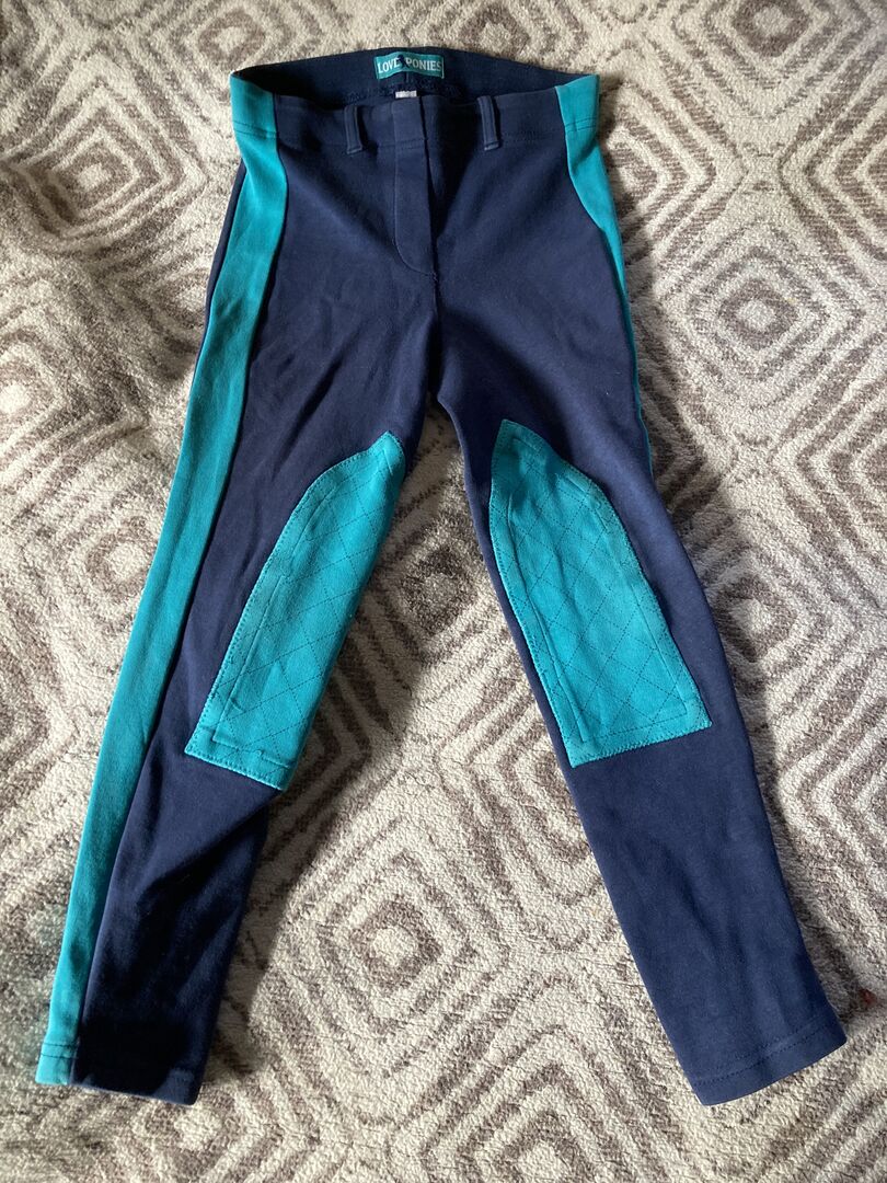 Schöne bequeme Reithose, Reitleggings in dunkelblau Türkis in Größe 134. für Mädchen und Jungs geeignet.