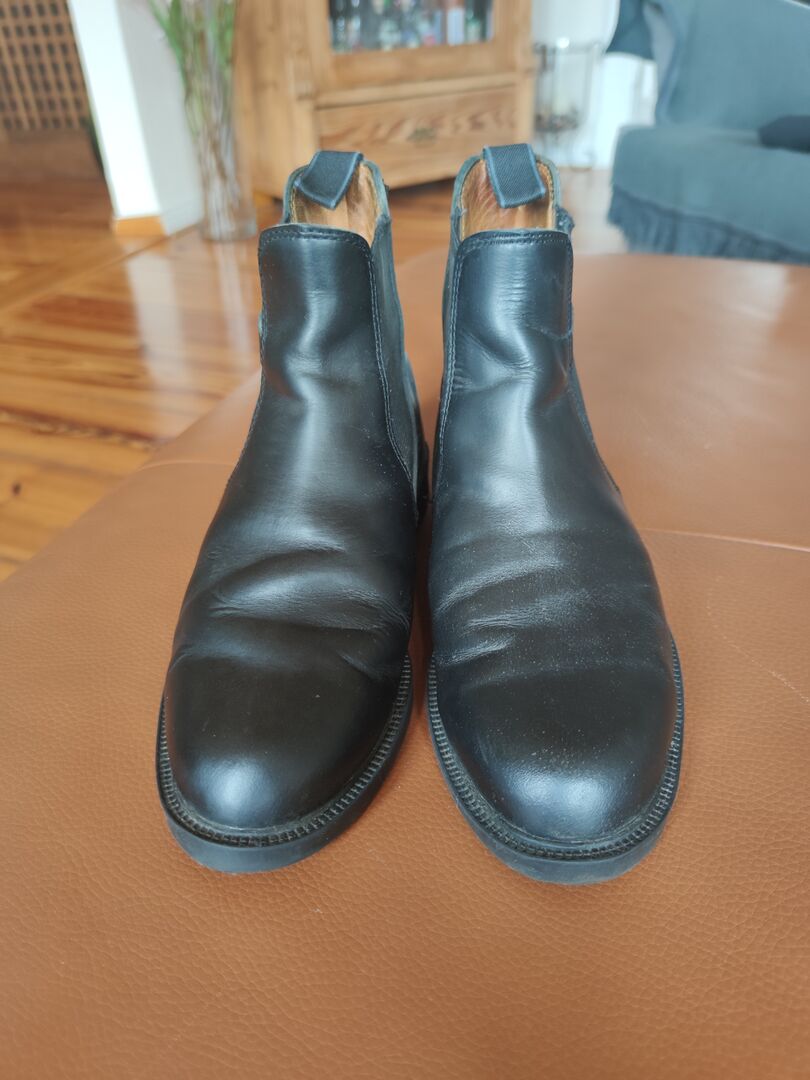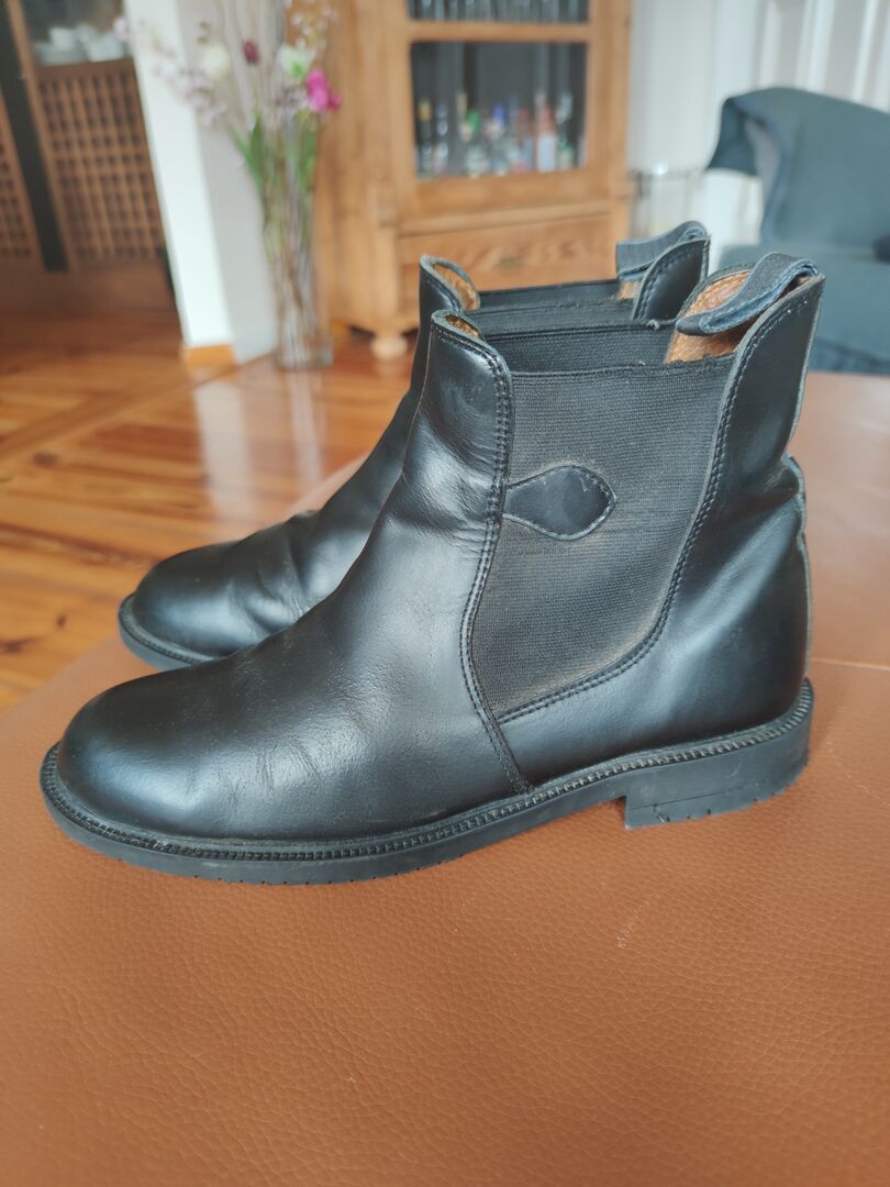 Ich verkaufe meine schwarzen Leder-Reitschuhe in Größe 39. Ich habe die Schuhe sehr oft getragen, dennoch befinden sie sich nach wie vor in einem sehr guten Zustand. Sie sind geputzt und eingefettet. Da sie eher groß ausfallen hatte ich immer noch eine zusätzliche Sohle drin (siehe Fotos). Diese kann auch gern mit verkauft werden.