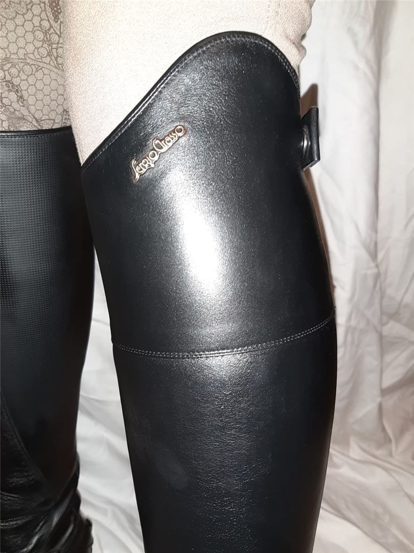 Ich verkaufe meine drei Monate alten, sehr gut erhaltenen Sergio Grasso Lederreistiefel in schwarz. Durch das dünne, weiche Kalbsleder passen sich die Stiefel dem Bein perfekt an. Sie verfügen über einen Sporenhalter, welcher an dem Reissverschlussschutz für den langen Reissverschluss hinten angebracht ist. An der Innenseite des Stiefels ist ein Gripeinsatz angebracht, der für eine super Haftung am Sattel sorgt. Die gut verarbeitete Vibram Gummisohle mit ProComf Fussbett rundet den perfekten Stiefel ab.