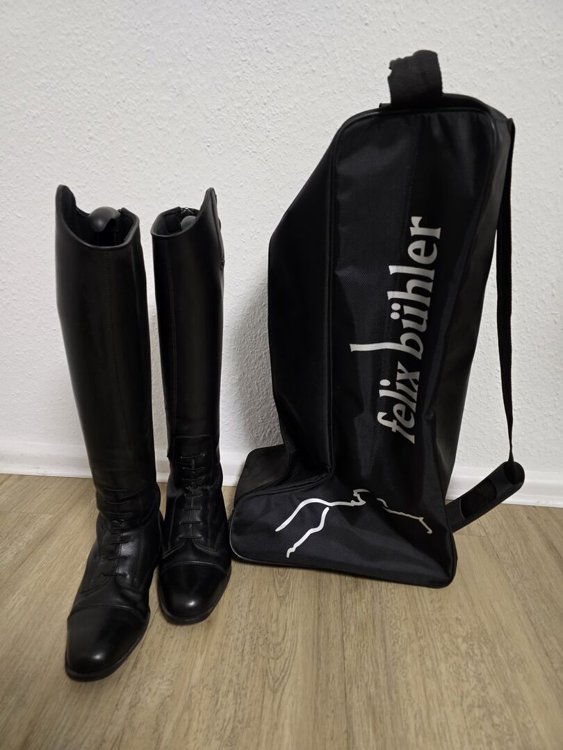 Ich verkaufe meine selten getragenen Reitstiefel Bergamo Grip von Felix Brühler in der Größe 38 (Schaft: schmal) inkl. passender Tasche und Stiefelspanner.