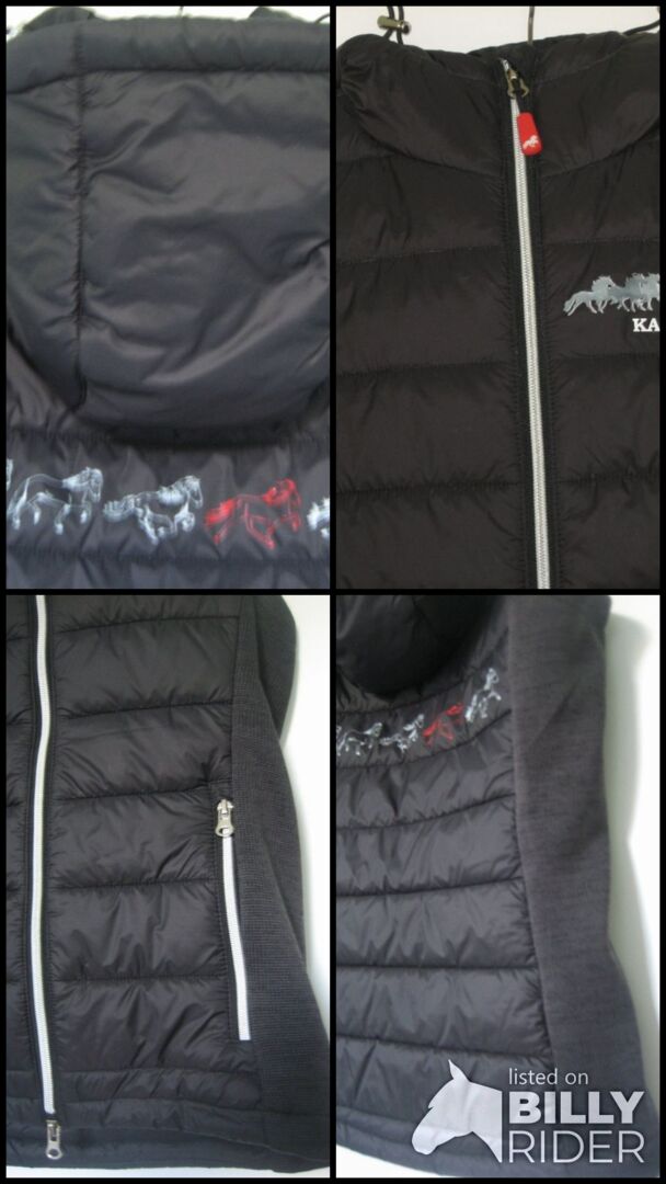 Hallo Liebe Islandpferde Freunde, Zum verkauf möchte ich diese von mir selbst Etworfene und Desingte Kombi Reitweste mit Kapuze in Größe XS Anbeietn. Es ist ein absolutes Unikat und wem die Islandpferde Reitport Marke Karlslund ein begriff ist weis das es da keine Reitweste von gibt. Die Weste hat einen zwei Wege Reissverschluss, zwei Reissverschluss Taschen und die Kapuze ist mit einem Druckknopf gesichert so das sie im Gallop nicht rum flattert. Sie hat auf der vorderseite das Karlslund Logo mit den Islandpferden im Tölt und auf dem Rücken die vünf Gangarten des Islandpferdes.