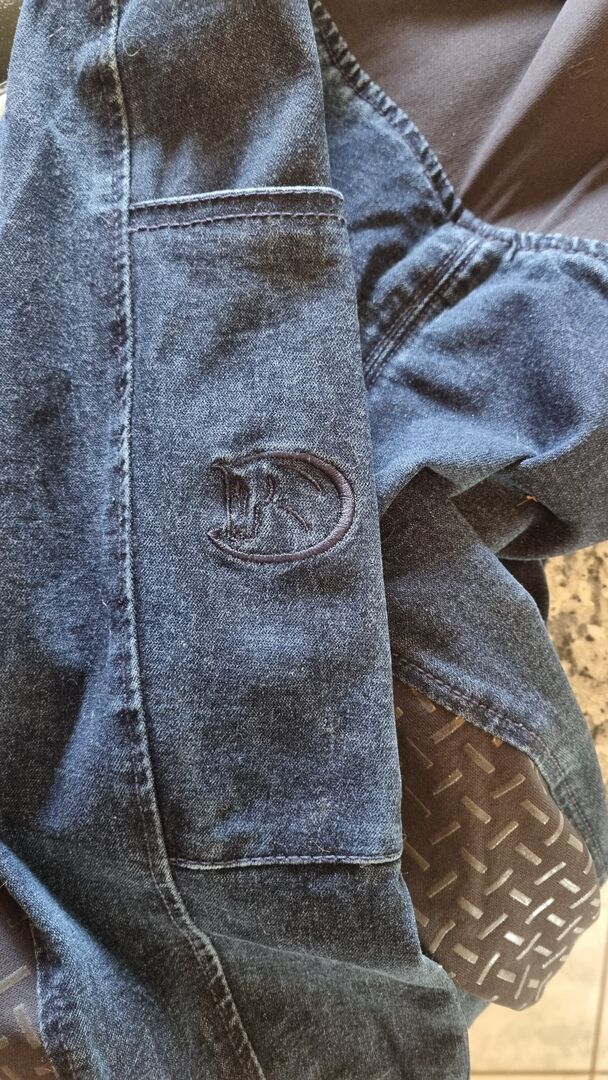 Biete hier eine Jeansreithose in Dunkelblau. Höchstens 3x getragen. Die Größenangabe ist 38, fällt allerdings aus wie 36 Hoher Bund, Vollbesatz Grip voll intakt, Elastischer Beinabschluss Versand gegen Kostenübernahme Privatverkauf, keine Garantie