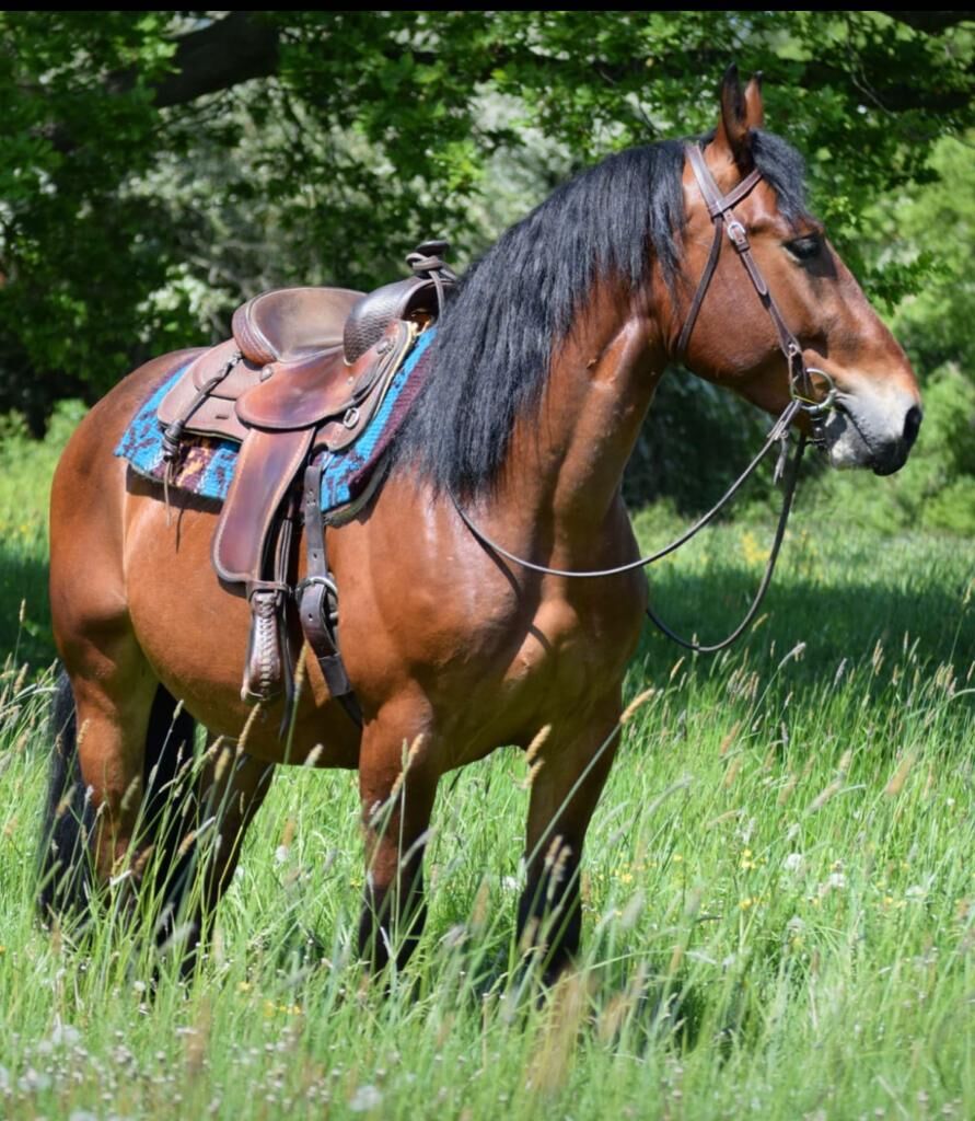 Dieser süße schlesische Warmblutmix Wallach sucht eine neues 5 Sterne Zuhause. Herkules ist 4 Jahre alt und besitzt ein Stockmaß von 154 cm. Der Wallach hat ein sehr kräftiges, kompaktes Gebäude und deckt damit auch größere Reiter gut ab. Er ist ein unerschrockenes, sehr gelehriges, verschmustes und anhängliches Pferd, welches viel Spaß beim Erlernen neuer Dinge hat. Herkules zeigt sich sehr lernwillig bei Zirkuslektionen etc. Er ist seit 8 Monaten unterm Sattel, besitzt eine solide Grundausbildung an der Doppellonge bis hin zur Basis und Trail. Lässt sich willig und fein reiten. Nicht stur oder faul. Geht gerne ins Gelände, egal ob vorne oder am Ende der Gruppe. Benimmt sich super und erschrickt sich nicht. Er ist ideal als Wanderreitpferd wie auch für Ranch Klassen der EWU geeignet. Herkules ist gesund (großer TÜV mit Röntgenbilder ohne Befund liegen vor). Wer einen tollen Partner für die Freizeitreiterei sucht, darf sich gerne diesen hübschen Buben anschauen.