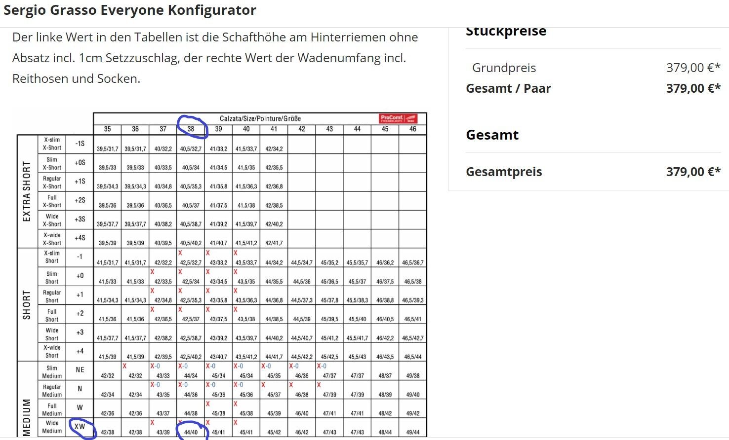 Gerne messe ich noch Längen nach die du benötigst, schreib mir einfach. Eine Größentabelle von Sergio Grasso findest du in den Bildern