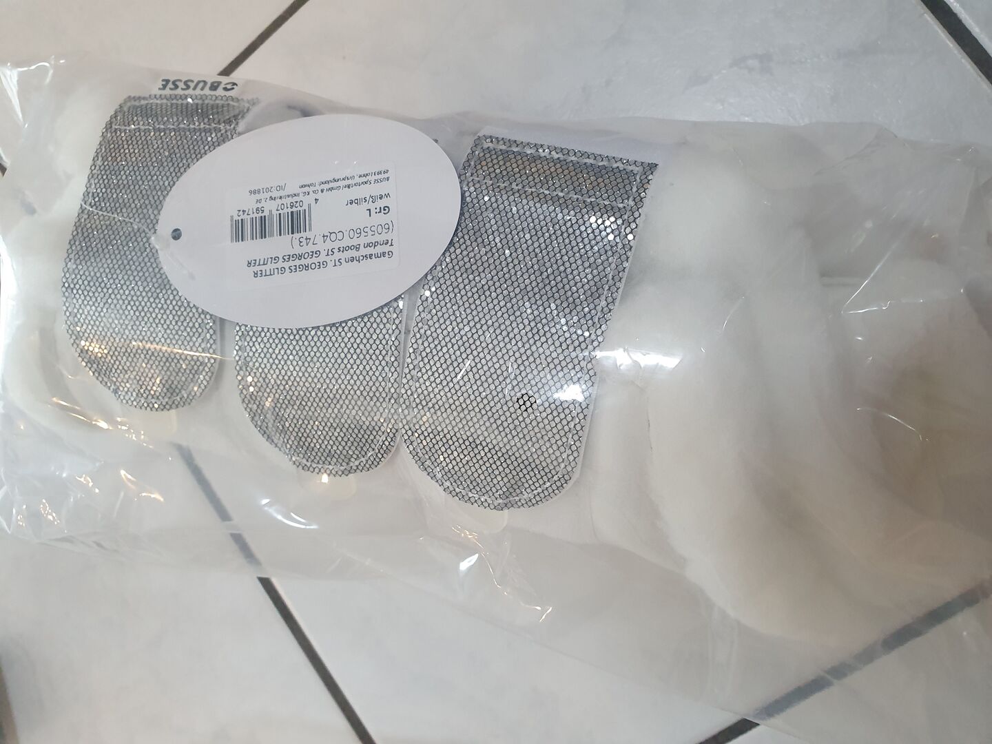 Gamaschen mit silberfarbenem Glitzer an den Klettverschlüssen und mit Kunstfell-Fütterung in Größe L