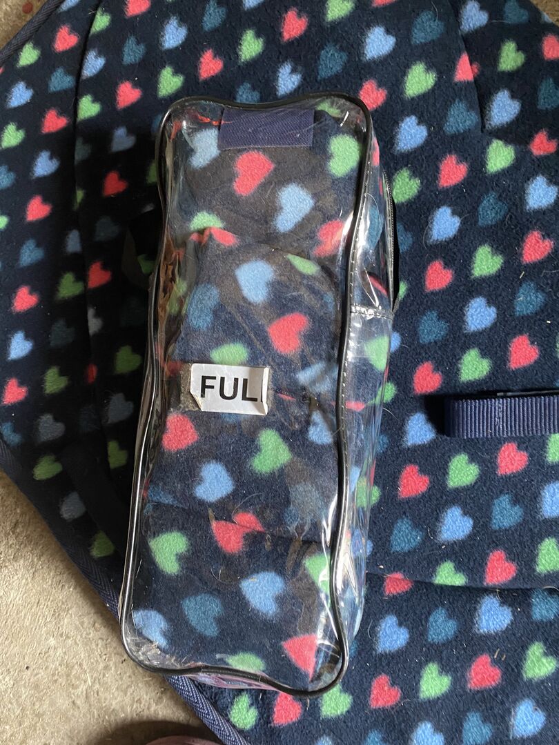 Ich verkaufe eine Showmaster Set mit Schabracke, Halfter+Strick und Bandagen mit Herzchen Motiv.