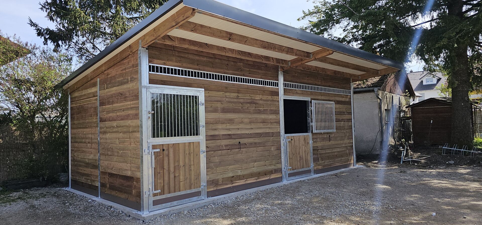 Hochwertige Außenställe für Pferde - robust, langlebig und speziell konstruiert für hohe Wind- und Schneelasten. Ideal für Paddocks, Reitställe, private Stallungen und Außenbereiche.
