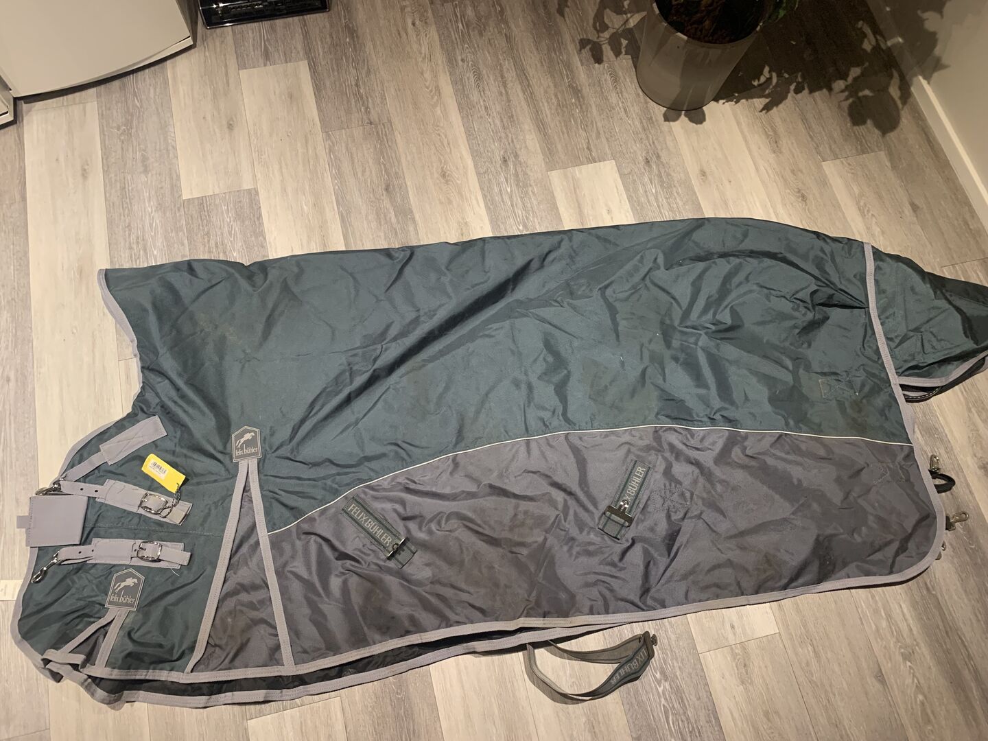 verkaufe hier eine Stalldecke von Felix Bühler die 1x getragen wurde. Die Decke ist 145cm groß und hat 0 Gramm. Die Decke hat high Neck, zwei Bauchgurte und zwei Beingurte. Leider ist sie nicht ganz regendicht. Da mein Pferd aber 24/7 draußen steht, kann sie die nicht tragen deshalb verkaufe ich sie als Stalldecke.