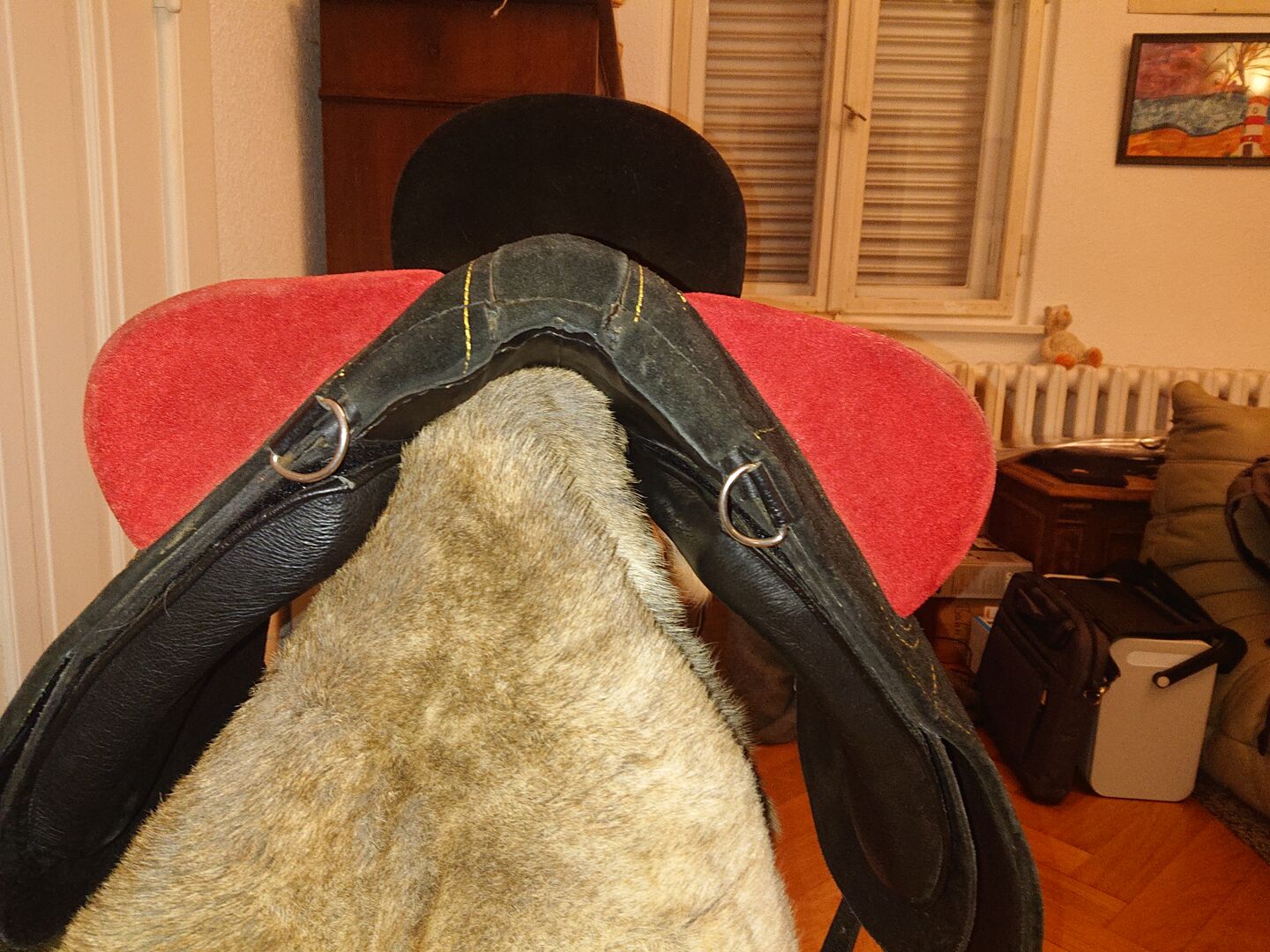 Der Sattel ist leicht. Die Steigbügelriemen können über oder unter dem Sattelblatt geführt werden. Die Strupfen sind einwandfrei. Über die Klettkissen und dank des Lederbaums kann der Sattel auf fast jedes Pferd angepasst werden.