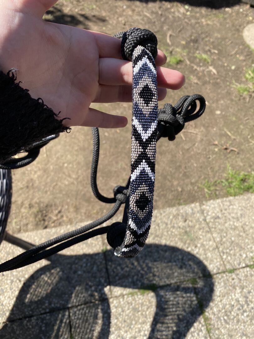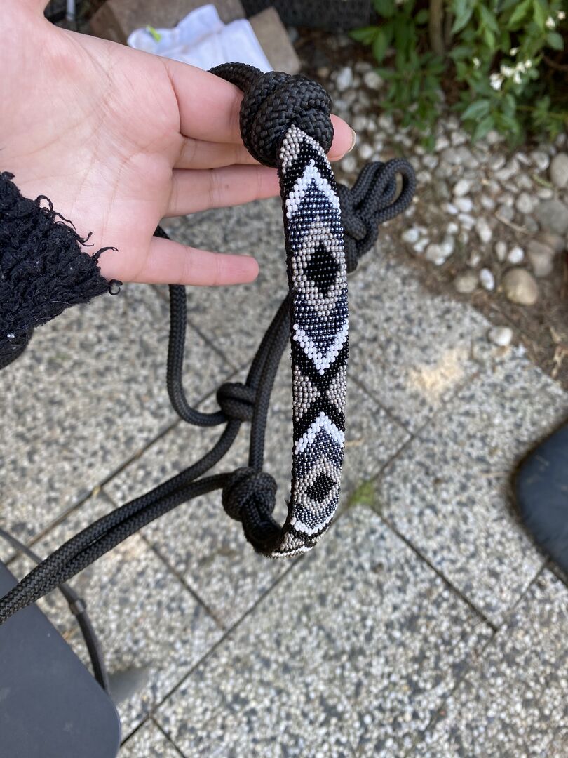Ich verkauf mein nicht gebrauchtes Knotenhalfter von Stonedeek in schwarz mit schöner Verzierung auf dem Nasenriemen in grau-weiß-schwarz. Es ist neu, lag nur ein mal für nicht mal 5 min auf dem Pferd zur Anprobe.