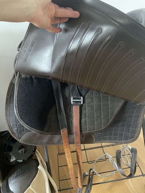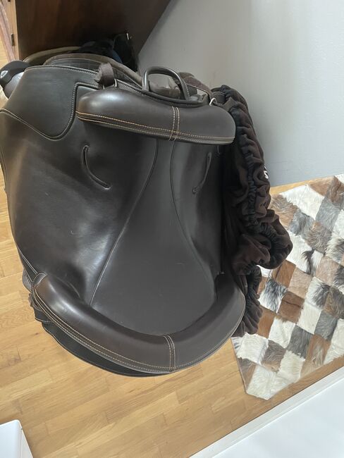 Der Sattel bietet immer ein absolut tolles, sicheres Sitzgefühl Reitgefühl. Egal ob länger im Gelände, Dressurarbeit oder auch kleine Sprünge. Der hier angebotene Sattel ist 7 Jahre alt (Kauf im August 2019 - kommt mit Sattelpass). Die Sitzgröße beträgt 18,5", ist aber trotzdem auch für schmalere Reiter geeignet. Die Kammerweite liegt aktuell etwa bei 32. Dieser Sattel ist ideal für Pferde mit hoher Schulter, einem nicht zu ausgeprägten Widerrist und eher breitem Rippenbogen. Der Sattel wurde regelmäßig kontrolliert und gepolstert. Da es nur mein Zweitsattel ist habe ich ihn wenig benutzt. Er hat nur sehr leichte Gebrauchsspuren.