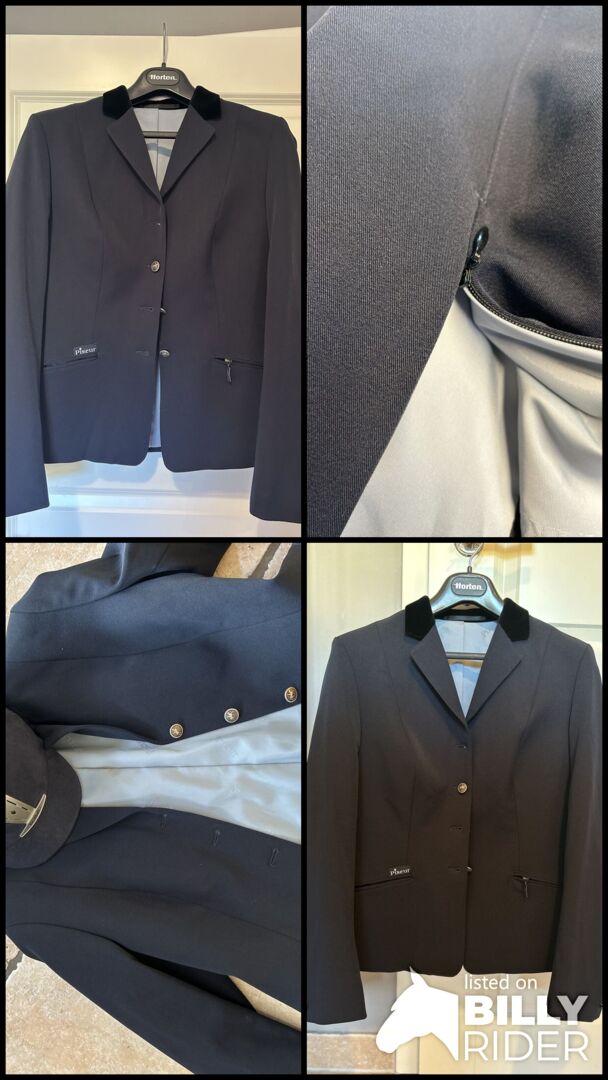 Verkaufe nagelneues ungetragenes Turnierjacket von Pikeur, dunkelblau mit Samtkragen und Reißverschlüsse an den Rückenschlitzen und Taschen, 60 EUR. Gerne verkaufe ich blauen Samthelm auch dazu 20,-EUR..