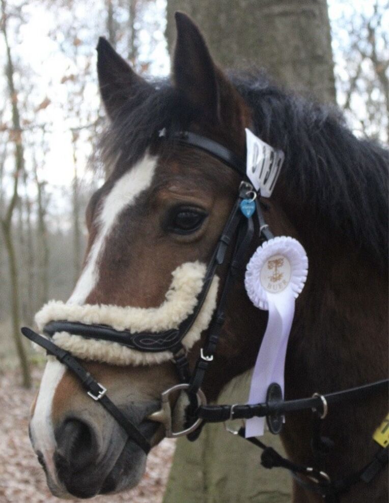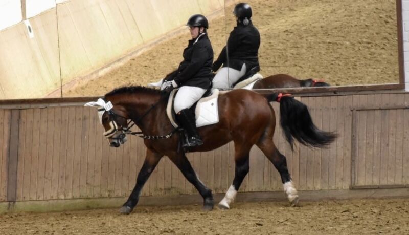 An der Longe und bei Freilaufen ohne Reiter drauf, fällt es ihm deutlich leichter.