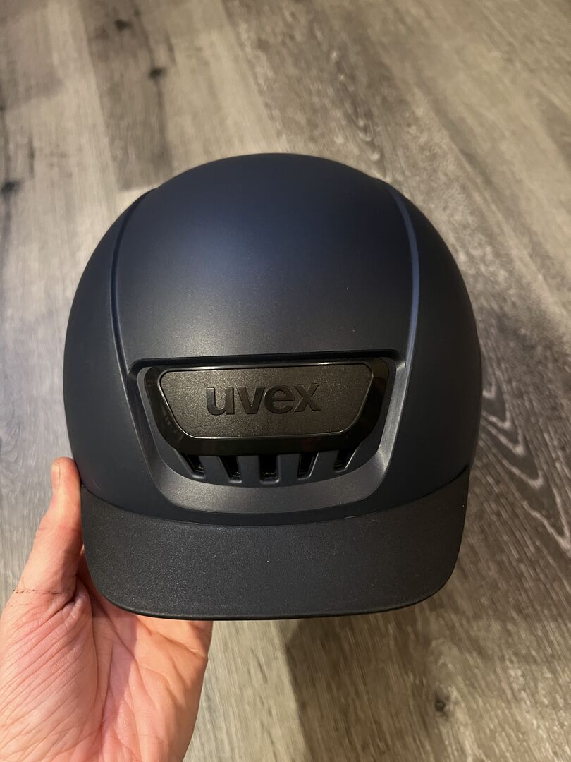 Verkaufe hier einen neuwertigen Uvex Elexxion in der Farbe Matt Blue. Ich hatte ihn Ende 2024 gekauft als Übergangshelm, da mein Elexxion mit Tocsen zur Reparatur war. Den Helm habe ich in dieser Zeit allerdings nur 4x getragen für jeweils 1h. Dementsprechend ist er absolut neuwertig. Gelagert wurde er immer in einer beheizten Sattelkammer in einer Helmtasche. Da mein Helm aber wieder da ist, ist dieser nun überflüssig. Ich reite lediglich mit Tocsen, da ich immer alleine im Gelände unterwegs bin. Der Helm ist super leicht, man merkt ihn kaum und er sitzt nicht wie ein Topf auf dem Kopf, so sehen schließlich viele Helme aus. Aufgrund des Rades, lässt sich der Helm super an den Kopf anpassen und passt daher super auch bei Zwischengrössen. Ich selbst habe einen Kopfumfang von 56,5cm und hier hat er perfekt gepasst.