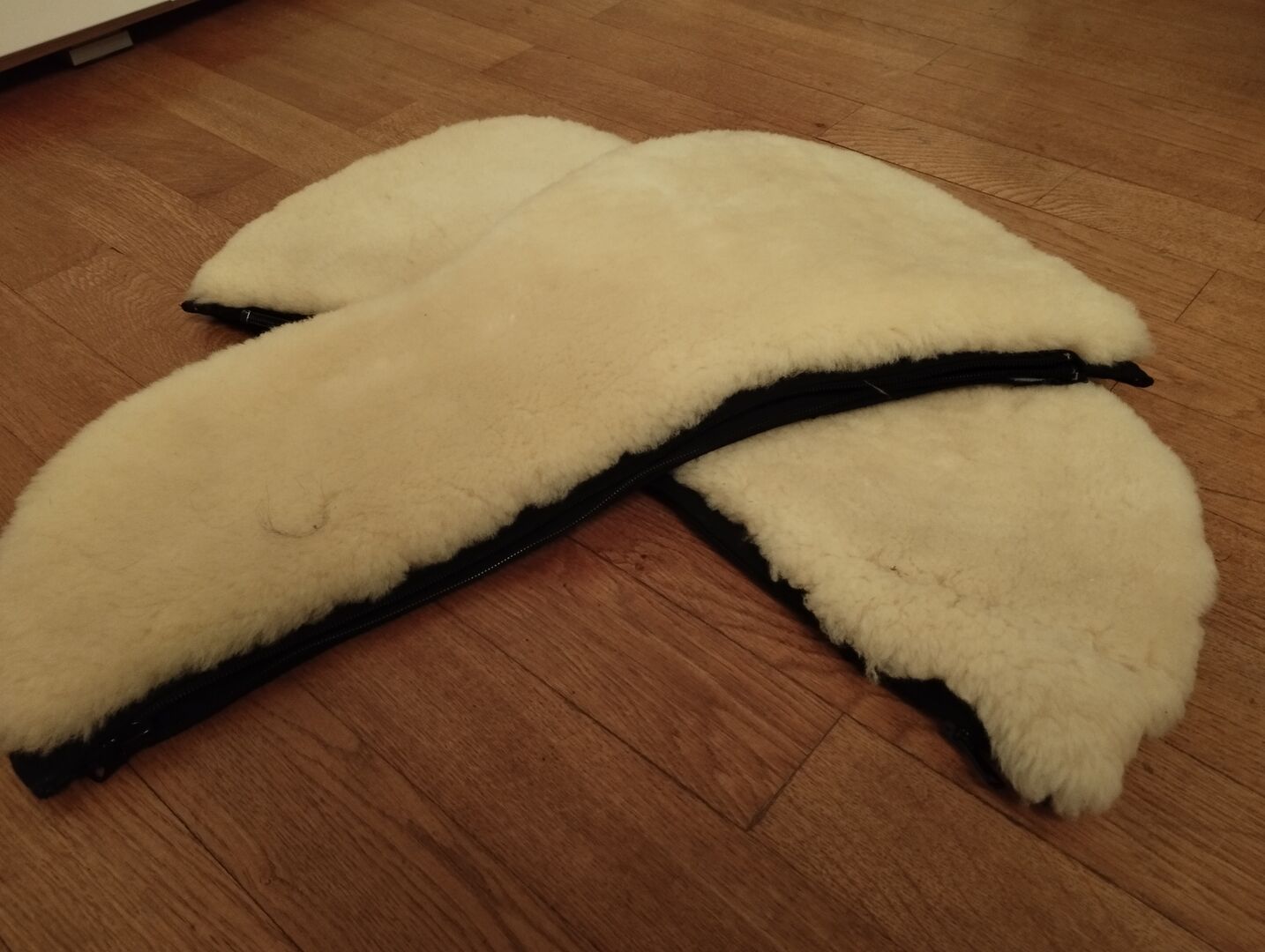 Verkaufe hier ein Paar klettbare polsterbare Lammfellpads. Diese sind befüllbar, Reißverschluss zum schließen. Werden ohne Einlagen verkauft. Drei Streifen sehr starker Klett. Lammfell aufgenäht auf stabilen Steppstoff. Passend für baumlose Sättel oder Lederbaumsättel, wie Startrekk Hidalgo, etc. Lammfell ist absolut neuwertig, nichts verfilzt/ verdrückt. Maße: Länge 57cm Hinten 20cm Vorne 25cm
