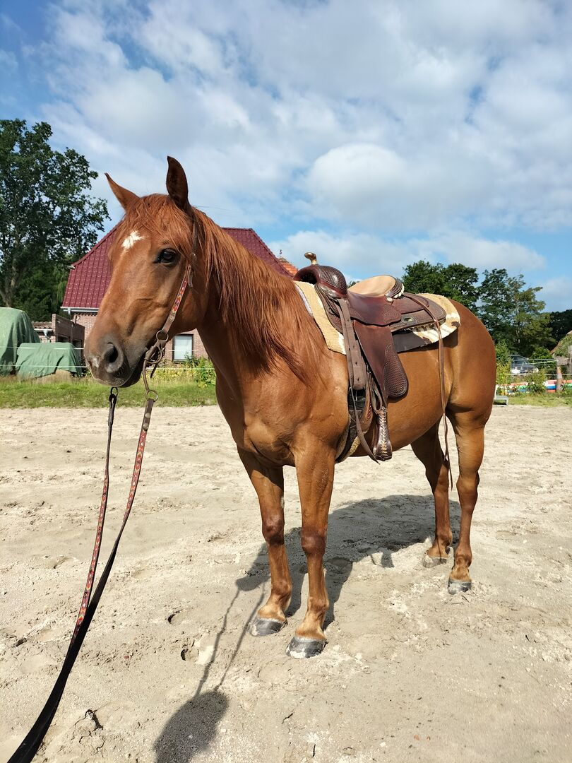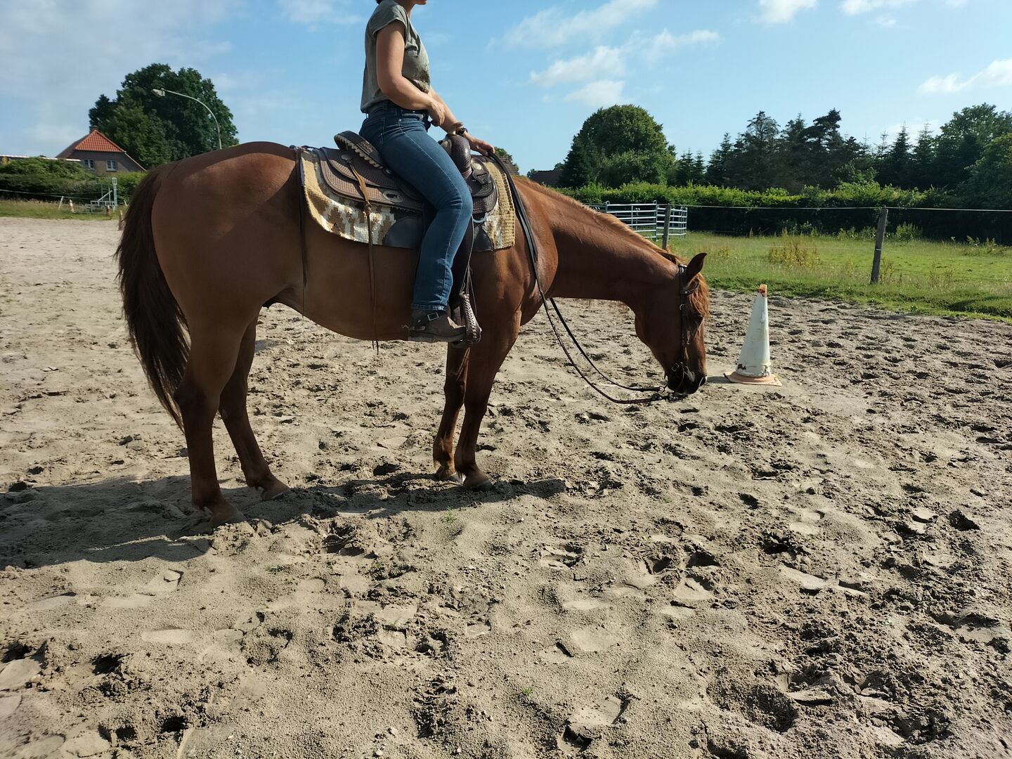 AM Moreno Poco Bueno - bildhübscher Quarter Horse Wallach (2014 geboren, Stockmaß ca. 154 cm) überzeugt nicht nur durch sein korrektes und kräftiges Gebäude mit solidem Fundament, sondern vor allem durch seinen liebenswerten Charakter und seine ehrliche, kinderfreundliche Art. Er kennt sowohl Box, Offenstall als auch 24/7 Weidehaltung und ist im Herdenverband artgerecht aufgewachsen. Es sind keine gesundheitlichen Einschränkungen bekannt. Der Wallach wurde spät und schonend von einem Profi ausgebildet, mit einem klaren Fokus auf Vertrauen und Partnerschaft. Er verfügt über eine solide Grundausbildung im Westernreiten, kombiniert mit intensiver Bodenarbeit nach Linda Tellington-Jones und Martin Kreuzer. Kennt Kurse und Lehrgänge an verschiedenen Orten und geht sicher ins Gelände, allein und in der Gruppe. Hat keine Reining-Ausbildung und auch kein Reining-Potenzial. Ebenso wurde er im Bereich therapeutischen Reiten ausgebildet. Charakterlich ein absoluter Schatz: menschenbezogen und freundlich, entspannt, brav und unkompliziert, kinderfreundlich, zugewandt und ehrlich. Aufmerksam und lernwillig. Ein echter Freizeitpartner zum Spaß haben. Ob als tolles Familienpferd, verlässlicher Kumpel im Gelände oder einfach als guter Freund im Alltag - dieser Wallach ist ein Pferd, auf das man sich verlassen kann.