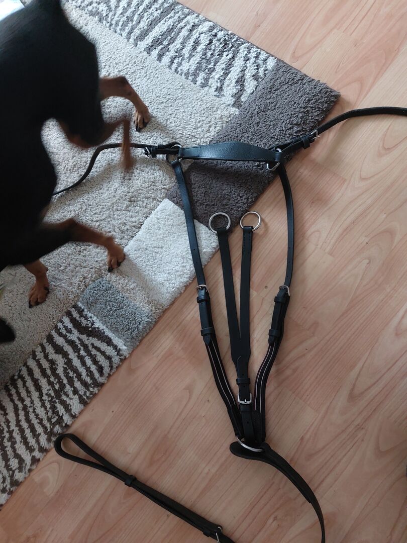 Verkaufe gern benutztes Vorderzeug schwarz mit Elastikeinsatz, Größe Cob