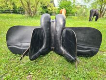 Weicher Sitz, Ringe für Packtaschen, dicke Pauschen- vergleichbar mit Sattel Goliath v Loesdau. Lag nur kurz auf einem Friesen- sehr guter Zustand- optimal für Schwarzwälder.