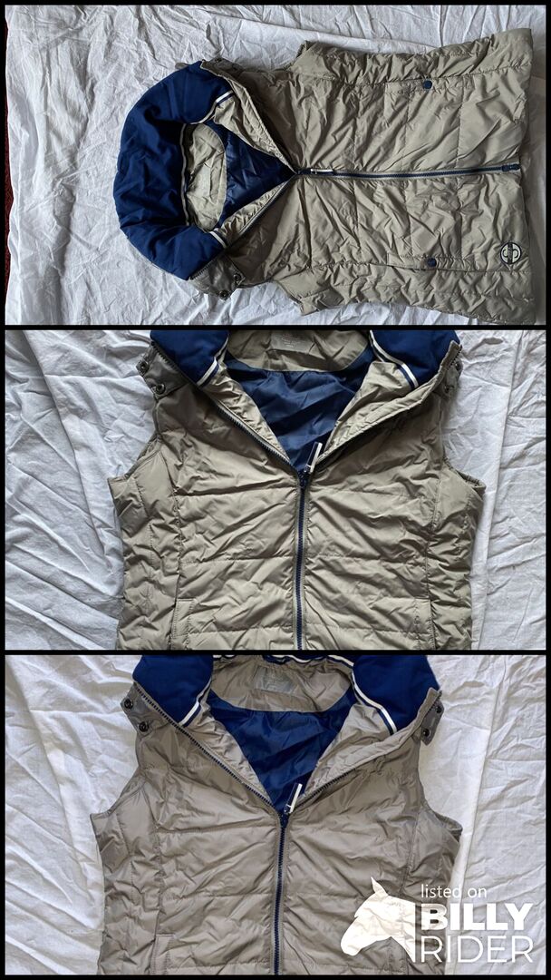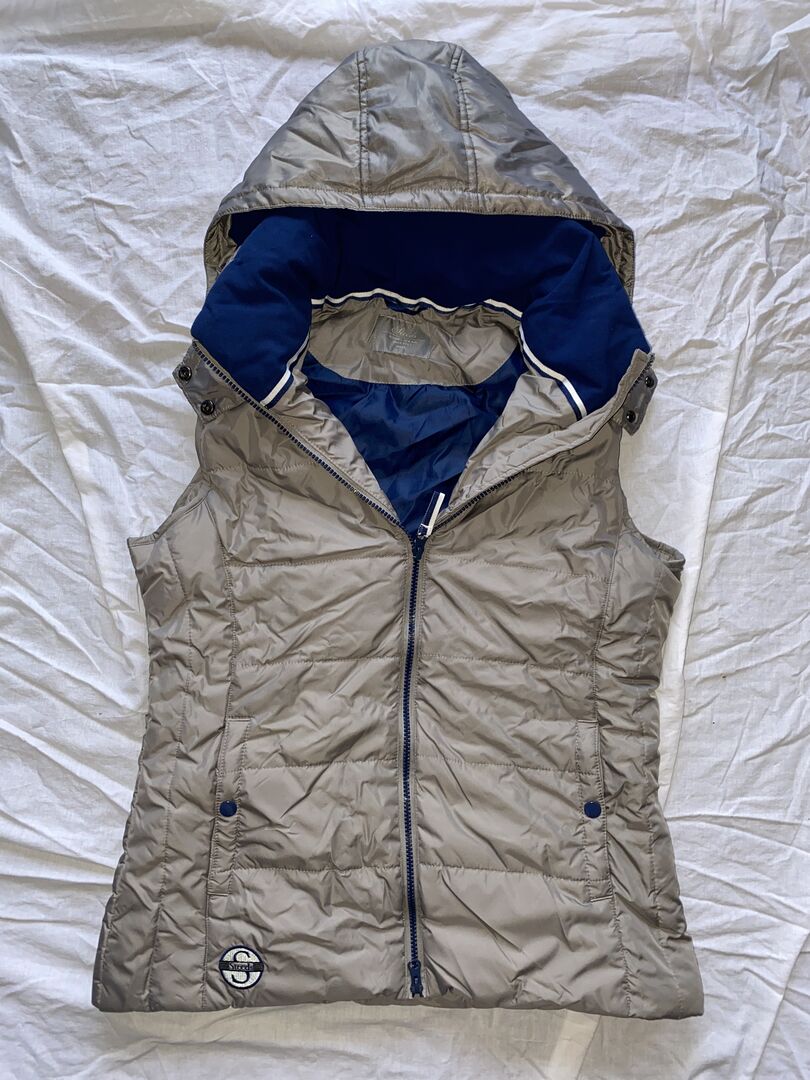 Biete eine Steppweste Gr.L Farbe Silber mit Blau und Kapuze.