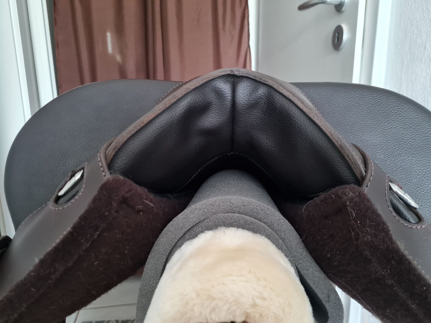 Wintec Half Breed Sattel, Hybrid aus Western- und Stocksattel, auch Polo-Cross-Sattel genannt, mega bequem für Reiter und Pferd, individuell anpassbar in Weite und Schwung direkt vor Ort mittels austauschbarem Kopfeisen (von eng bis extra weit) und Einlagen zum entsprechendem Polstern. Man sitzt wunderbar nah am Pferd und ist daher sowohl für's Gymnastizieren oder Working Equitation Disziplin geeignet als auch für entspannte Geländeritte und speziell auch für unsichere Reiter, die Sicherheit und guten Halt im Sattel bevorzugen. Dieser Sattel wurde direkt aus Australien importiert, ist aktuell noch nicht in Deutschland im Handel erhältlich, wird nur verkauft da er meinem Reitfass leider nicht passt. Sitzgröße M (entspricht 16" Westernsattelsitz bzw 17" Dressursattel), normale Standard Fenderlänge. Passend für schmale bis kräftige Pferde, nicht für überbreite Pferde mit sehr rundem Rücken. Hervorragend geeignet für kurze Pferde. Aktuell weißes(breites) Kopfeisen verbaut, kann aber nach Bedarf getauscht werden. Keine Beschädigungen, lag noch keine 5x auf dem Pferd und wurde im Februar erworben. Hervorragende Qualität und Verarbeitung und viel leichter als ein normaler Westernsattel. Anprobe und Anpassung vor Ort natürlich möglich. Bei Sofortkauf 1550€ ohne Anpassungsservice. Keine Scheckzahlung!