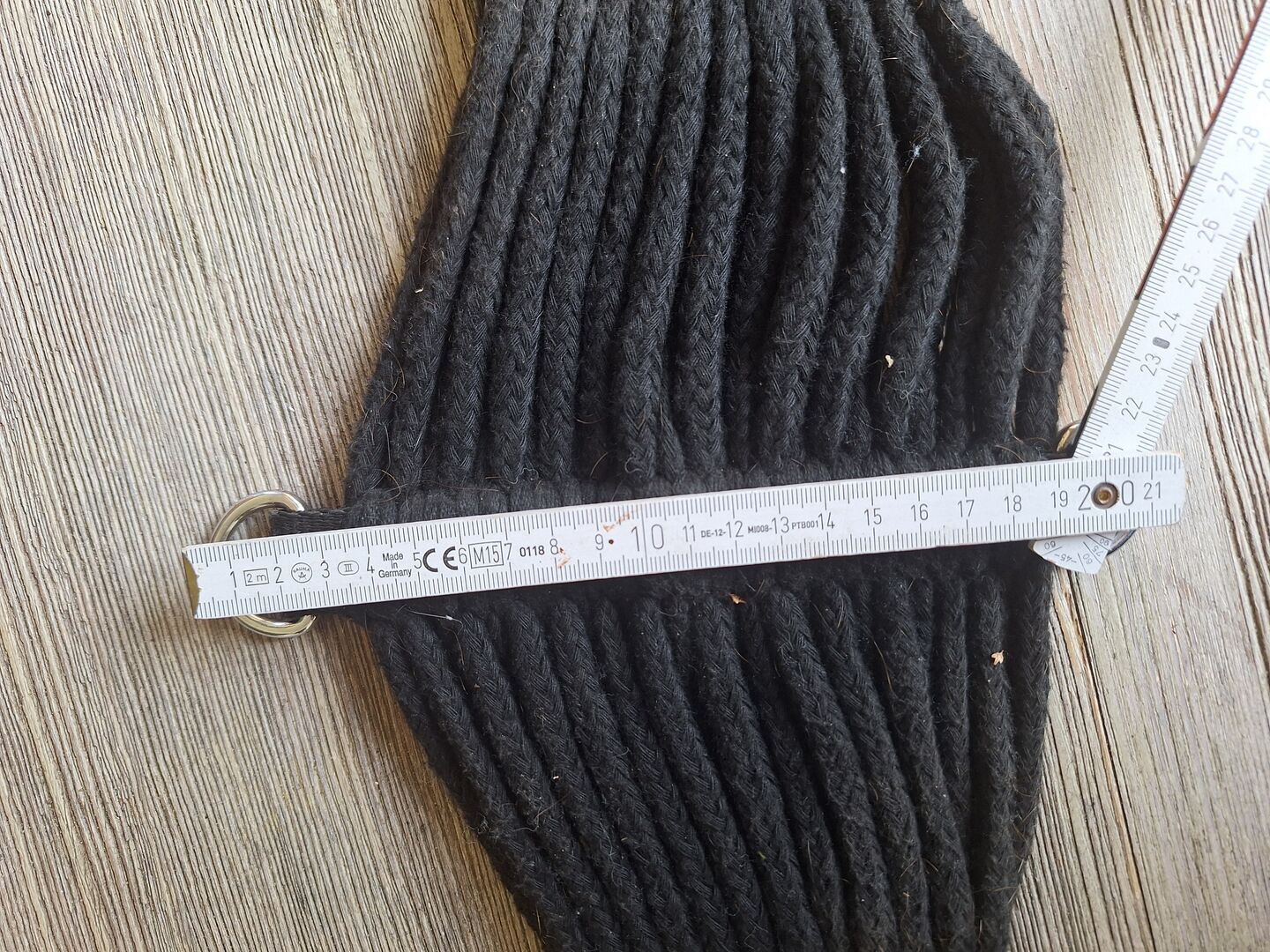 Schön weicher Schnurengurt in 80 cm, passt sich gut an, leider zu klein geworden. Ich habe ihn selber gebraucht gekauft, daher kann ich nichts über das Material sagen. Ungewaschen, daher Haare etc. vorhanden. Privatverkauf, keine Rücknahme und keine Gewährleistung