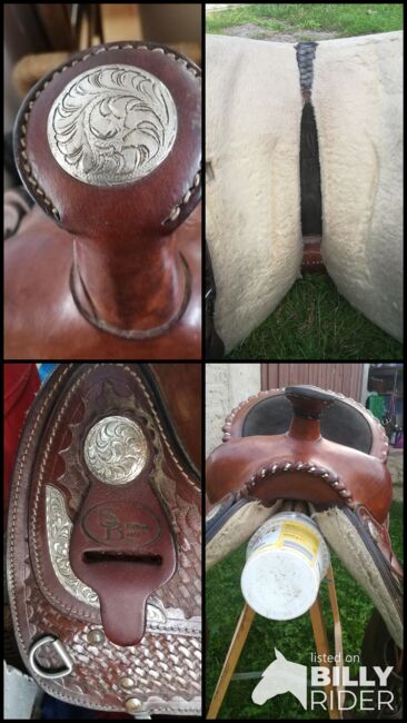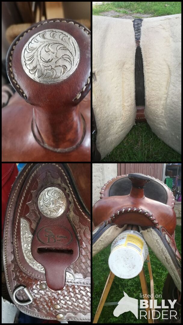 Gut erhaltener westernsattel in gr. 16 Zoll (mein 44er Hintern passt gut rein😃). Wird verkauft, da das Pferd in Rente gegangen ist und er den anderen nicht passt. Geeignet für etwas breitere Pferde mit wenig Widerrist. Der Sattel ist zwar ein no-name, aber dennoch von guter Qualität. Er hat sehr schöne silberfarbene Beschläge Anprobe im Umkreis möglich. Zur Anprobe verschicken geht allerdings nicht.