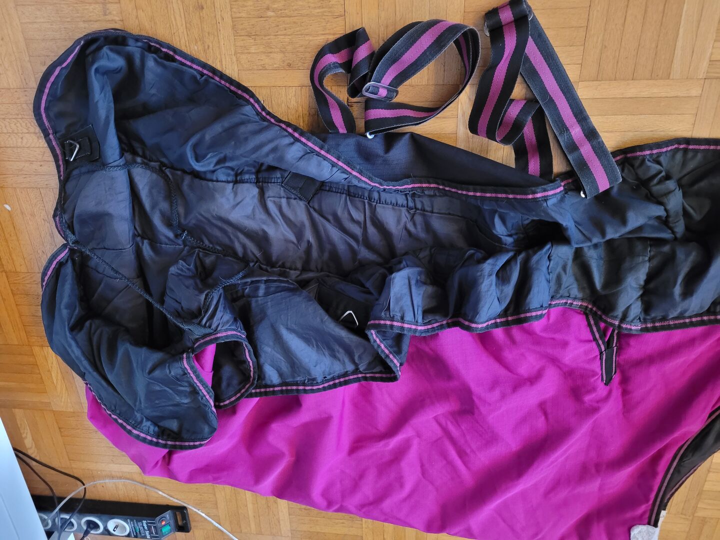 Wegen Modellwechsel zu verkaufen gute gebrauchte Decke für das pferd , low neck 125 cm, ideal als Stalldecke, da nur leicht gepolstert ca 50 g schild fehlt leider. Mit Bauchgurten, ohne Beingurten. Farbe pink / schwarz