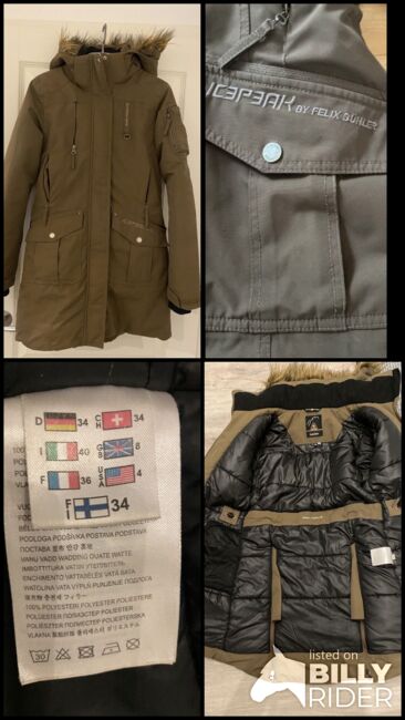 Verkaufe wunderschönen Felix Bühler Wintermantel icepeak. Er hat die Größe 34 An den Klettverschlüssen befinden sich einige Haare (siehe Bilder). Der Mantel ist sehr gut erhalten. Habe ihn selber gebraucht gekauft. Mir ist es leider zu klein