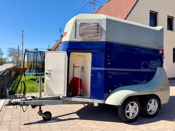 Gepflegter Anhänger mit Sattelkammer, Futterkrippe, Schnellentriegelung von außen möglich. Boden wurde erneuert, innen Gummiboden, ebenso Gummiverklei