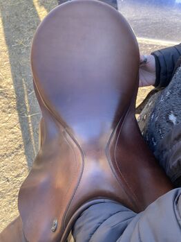Sattel 3-jährig, Sitzgrösse 18, Kammerweite 36 (für sehr breite Pferde). Kann von jedem Sattler auf das jeweilige Pferd angepasst werden. Mit farblich