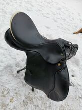 Sattel in sehr gutem Zustand und ohne Gebrauchsspuren. Hat einen Vorschnitt von 4cm (AA) und ist daher ideal für etwas größere Reiter. Kammerweite 3